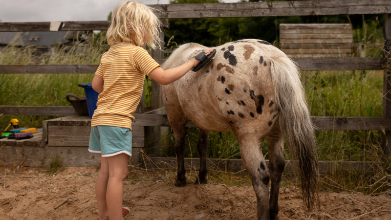 • Pony’s en paarden verzorgen