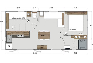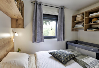 De stacaravan beschikt over twee slaapkamers: één met een tweepersoonsbed van 140 cm en één met twee eenpersoonsbedden van 80 cm. Dekbedden en kussens zijn aanwezig en ook beddengoed is inbegrepen.