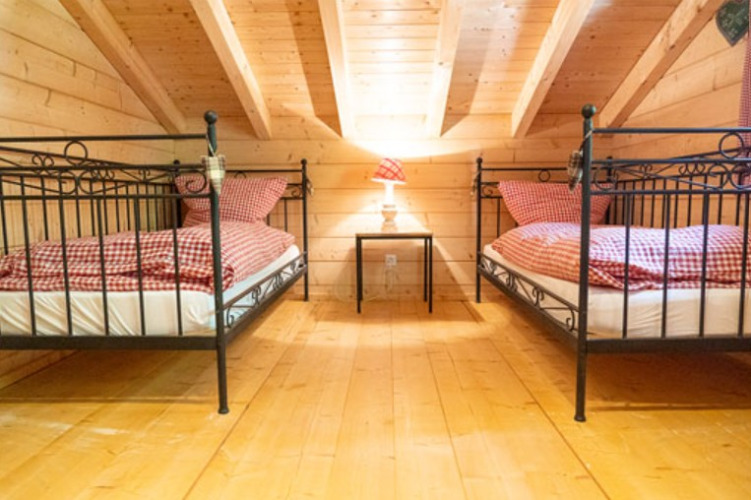 Blokhut De blokhutten zijn het hele jaar door te huur. Je kunt kiezen uit twee blokhutten in cottage-stijl en een blokhut in jachthuisstijl. Ook hier kun je met maximaal vier personen overnachten op een oppervlakte van ongeveer 55 vierkante meter. Er is een slaapkamer met een tweepersoonsbed en een slaapzolder met twee eenpersoonsbedden. De vloerverwarming zorgt voor een gezellige sfeer, zelfs in de winter. De eetkeuken is uitgerust met een fornuis, waterkoker, magnetron, vaatwasser en een pod-koffiezetapparaat - je kunt de juiste pods ook in de winkel krijgen. De badkamer is uitgerust met een douche, wastafel en toilet. Het buitenterras nodigt je uit om te ontspannen. Neem je eigen handdoeken mee (douchehanddoeken en theedoeken). Beddengoed is aanwezig. Roken is niet toegestaan in de blokhutten. WLAN is gratis beschikbaar.