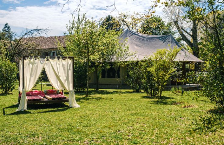 In het hart van het eeuwenoude park van Villa Veneta liggen zes met zorg ingerichte luxe tenten, die gasten een ongeëvenaarde glampingervaring bieden. Elke tent heeft een eigen karakter en combineert op harmonieuze wijze natuur, privacy en elegantie.