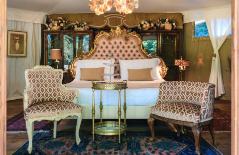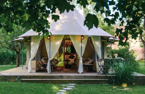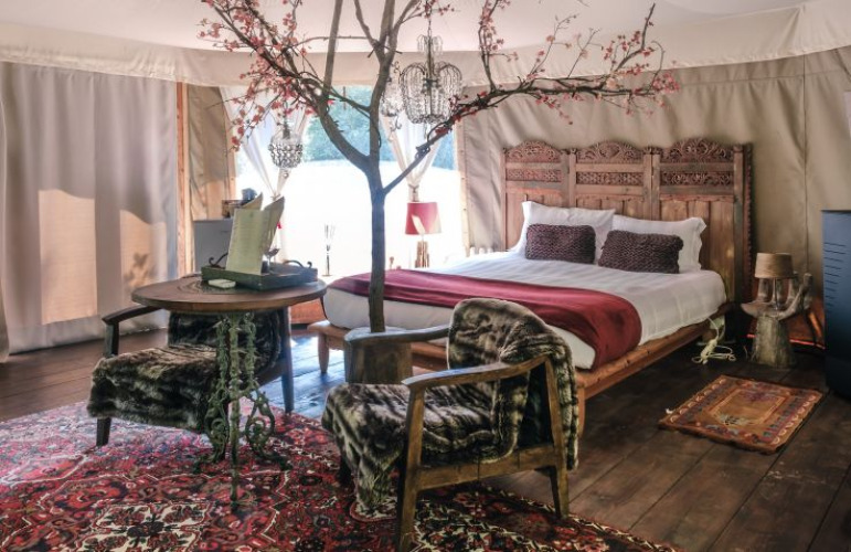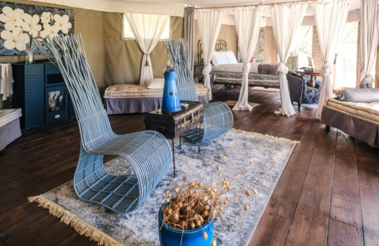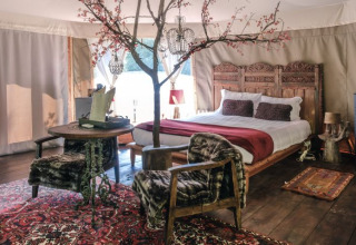 Uitgerust met antieke meubels, natuurlijke stoffen en bijzondere vondsten van reizen, ontstaat een tijdloze charme die het gevoel geeft te verblijven in een verfijnde toevluchtsoord midden in het groen. Elke tent beschikt over een ruime slaapruimte met kingsize bed en hoogwaardige beddengoed, een privébadkamer met douche en een gezellige woonruimte met unieke meubels en handgemaakte details. Een eigen tuin nodigt uit om in alle rust van het park te genieten. Airconditioning en verwarming zorgen het hele jaar door voor perfect comfort, terwijl een minibar drankjes koel houdt en ruimte biedt voor kleine lekkernijen. Geselecteerde verzorgingsproducten, thee en kruideninfusies, evenals liefdevolle extra’s dragen bij aan jouw welzijn. Dankzij de wifi-verbinding blijf je verbonden zonder dat de sfeer van afzondering verloren gaat.