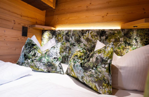 Een bijzondere ervaring wacht u in de knusse Landelijke Eieren: hier kunt u uw jeugddroom waarmaken en in luxe stijl in de bomen overnachten. Hoog boven de grond en omgeven door de natuur kunt u uw vakantiedagen doorbrengen met z'n tweeën of met uw kinderen. De Landelijke Eieren zijn circa 38 m² groot en volledig gebouwd met traditionele Allgäu-bouwmaterialen. De inrichting bestaat uit lokaal gerecycled hout. Een veilige houten trap leidt naar uw boomhut, die aan de rand van het bos ligt en in de zomer bijna volledig beschut is tussen een grote groep bomen. Op de begane grond bevindt zich een gezellige slaapkamer met een ruim tweepersoonsbed. De eerste verdieping biedt een eethoek, een moderne kitchenette met koelkast en vaatwasser, en een badkamer met douche en toilet. Het hoogtepunt is de luxe koepel met een extra tweepersoonsbed, een prachtig uitzicht op de sterrenhemel en een aangrenzend dakterras. Op de ruime veranda en het dakterras kunt u genieten van de natuur op grote hoogte. U beschikt over uw eigen elektriciteit opgewekt door zonne-energie, warm stromend water en vloerverwarming. Er is ook een barbecuehut en een vuurplaats aanwezig. De parkeerplaats ligt op 20-40 meter afstand, waardoor u verzekerd bent van rust en stilte, ver weg van verkeerslawaai.