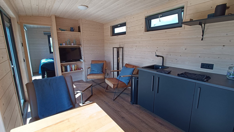 De gezellige woonruimte is ingericht met twee fauteuils, een tv en een eettafel met twee stoelen. Voor de liefhebbers zijn er boeken aanwezig en er is een mini-bieb op het erf. Buiten is er een groot terras waar gasten kunnen ontspannen. Voor extra luxe kan er een hottub bijgehuurd worden. Daarnaast is er fietsverhuur beschikbaar op het erf, ideaal voor het verkennen van de omgeving. De Pipowagen biedt een unieke en comfortabele ervaring op dit stadslandgoed.
