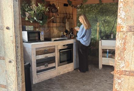 Voor wie graag kookt is er het ‘Kookhuys’: een gezellige buitenkeuken met alles erop en eraan, van een inductiekookplaat tot een oven en magnetron. Ideaal als je net wat uitgebreider wil koken dan in je huisje zelf.