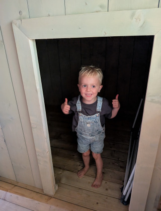 Wat je verder kunt verwachten? Een grote koelkast met vriesvak, vaatwasser, privé sanitair met regendouche en toilet, én drie slaapgedeeltes – waaronder een gezellige bedstee. Mijn zoontje dook er meteen in alsof het z’n eigen hutje was.