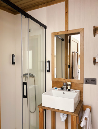 Wat de Glamping Tent Almanzora extra fijn maakte was het feit dat er direct naast de accommodatie een klein privé sanitairhutje met douche, toilet en wasbak was – lekker schoon en praktisch. Buiten was ook een gootsteen waar we makkelijk konden afwassen. Alles privé voor ons.