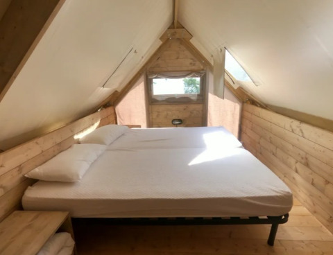 De Air Dreamer 1 is een speelse, innovatieve glamping tent voor reizigers die nét iets bijzonders zoeken. Beneden vind je alles wat je nodig hebt: een praktische kitchenette om zelf te koken en een badkamer met douche voor extra comfort. Het echte wow-moment wacht boven. Via de trap kom je in de tentvormige slaapruimte op de verdieping, heerlijk knus en verrassend ruim. Hier staan drie eenpersoonsbedden, ideaal voor een stel, een klein gezin of vrienden. Geen airco of verwarming, maar wél dat echte buitengevoel en frisse nachten.