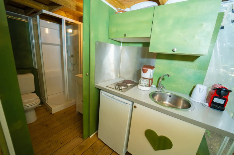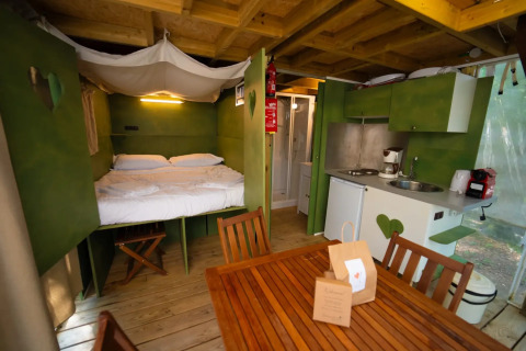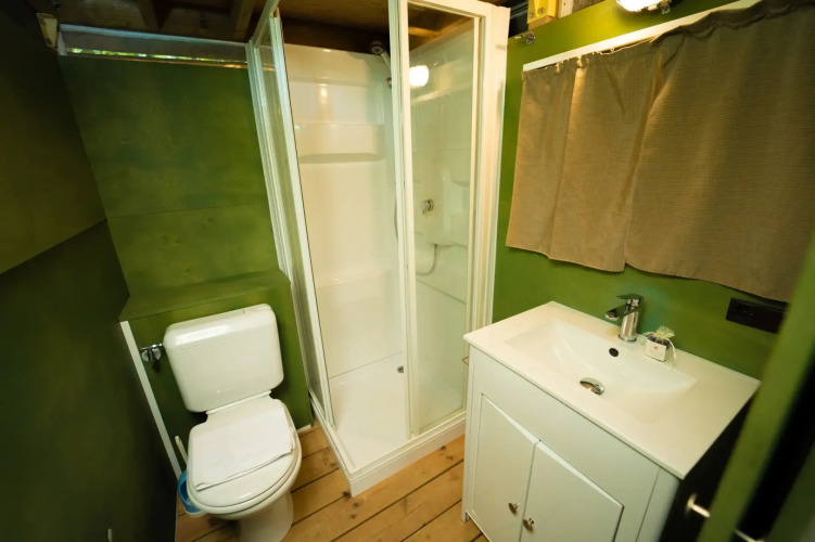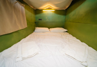 Op het ruime houten terras met tuinmeubilair geniet je in alle rust van de natuurlijke omgeving. Airco of verwarming zijn hier niet nodig – het slimme ontwerp en de sfeer zorgen voor een comfortabel verblijf in elk seizoen. Huisdieren zijn niet toegestaan. Wel zijn bij aankomst de bedden al opgemaakt en liggen handdoeken voor je klaar, voor een zorgeloze start van jouw glampingervaring.