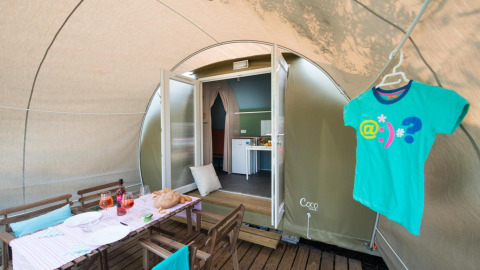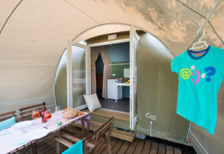De Coco Suite is een tent van de nieuwste generatie, modern, gunstig geprijsd en ideaal voor als je met een groep vrienden reist of met koppels.