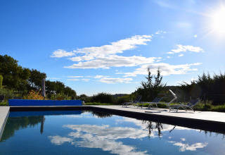 - Groot zwembad met ligbedden
