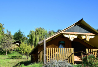 De ruime tent biedt plaats aan maximaal 5 personen in twee aparte slaapkamers, ideaal voor gezinnen of een klein groepje vrienden. Je beschikt ook over een eigen badkamer met een ontspannende hydromassagedouche, zodat je na een dag aan het zwembad of op het strand in stijl kunt opfrissen. Dankzij de airconditioning blijft het heerlijk koel, zelfs op de warmste zomerdagen.