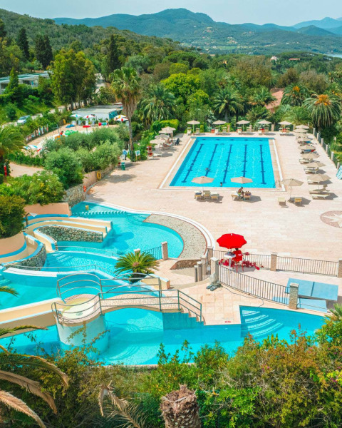 Camping Rosselba Le Palme is een groene familiecamping op het betoverende eiland Elba, gelegen in Località Ottone, vlak bij Portoferraio. Het park is omgeven door mediterrane natuur en een botanische tuin van twee hectare, wat zorgt voor een unieke, tropische sfeer vol schaduwrijke plekjes. Voor gezinnen is er volop vermaak: zwembaden met glijbanen, kinderbad met waterspeeltoestellen en animatie in het hoogseizoen. Daarnaast kun je genieten van heerlijk eten en drinken bij het restaurant en de bars, of verse boodschappen halen in de minimarkt. Het kiezelstrand ligt op korte afstand en het levendige havenstadje Portoferraio bereik je in slechts tien minuten.