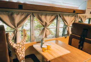 De Schoolbus biedt een iconisch glampingverblijf, waarbij vintage Amerikaanse charme wordt gecombineerd met de rust van de natuur en een vleugje luxe. Binnen vind je een warm en sfeervol interieur met een tweepersoonsbed, twee eenpersoonsbedden, een gezellige zithoek, een kitchenette met koelkast en Nespresso-apparaat, en een eigen badkamer met douche.