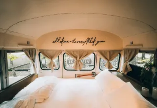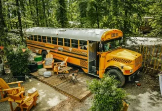 - Iconische vintage schoolbus glamping-ervaring