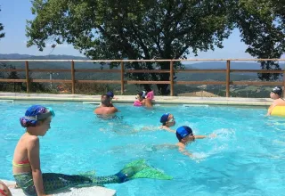 Ja, op het park vind je een buitenzwembad en een peuterbad.Is er wifi bij Lodgetent met badkamer?