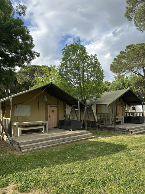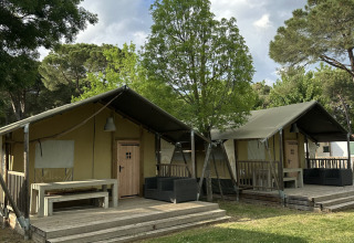 De ligging van de tenten zijn top, mooie uitzichten als niet alle plekken ervoor bezet zijn. Ruime plek waar het soms wel zoeken was naar wat schaduw op de middag. Die vonden we dan wel bij het meer of zwembad. De ruimte in de tent is erg fijn! Bedden waren goed, fijne douche en kasten goed gevuld met servies en pannen enzo.
