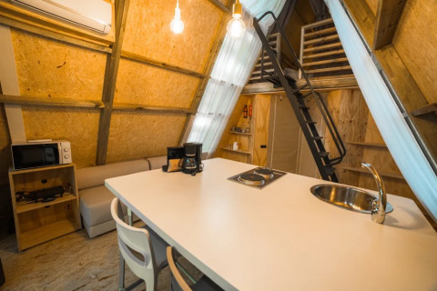 Dit knusse verblijf heeft twee verdiepingen en twee slaapkamers. Boven bevindt zich een slaapkamer met twee eenpersoonsbedden en op de begane grond een tweepersoonsslaapkamer. Er is een ruime badkamer met douche, toilet en wastafel. De compleet ingerichte keuken met gezellige zithoek en airco. Buiten staat een complete tuinset op het overdekte buitenterras, om te genieten van de mooie natuur. De A Luxury is geschikt voor maximaal vier volwassenen.
