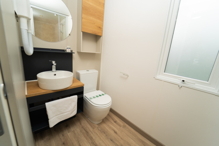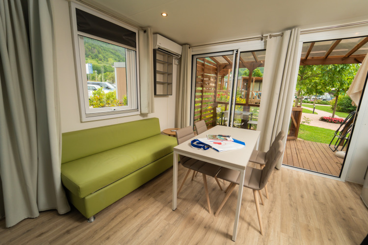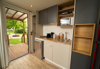 Er is een grote slaapkamer met comfortabel tweepersoons bed waar je heerlijk kunt uitrusten van een ontspannen vakantiedag. Gaan jullie met zijn drietjes dan is er nog een comfortabele slaapbank. De lichte woonkamer met airco, volledig uitgeruste keuken en badkamer met douche en een apart toilet maakt het geheel compleet. Elk detail is ontworpen om je welzijn en ontspanning te bieden, tussen natuur en design.