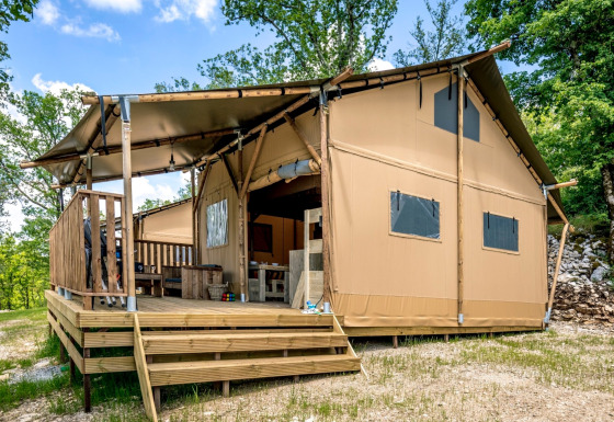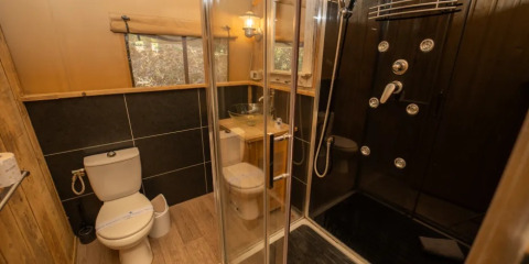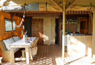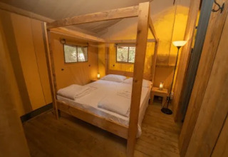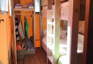 Deze glampingaccommodatie met twee verdiepingen is perfect voor grotere gezinnen. Boven wacht een ruime kinderslaapkamer met twee eenpersoonsbedden. Beneden geniet je van een gezellige eethoek, moderne keuken en twee comfortabele slaapkamers, waarvan een met een tweepersoonsbed en de ander een stapelbed. De badkamer is volledig uitgerust met toilet en douche en buiten wacht een grote veranda waar je heerlijk kunt ontspannen. Geen airco, wel volop charme.