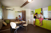 Mi sàtoros mobilhàzban szálltunk meg, ami tökéletes választás volt. A konyha teljesen felszerelt, a szobák kényelmesek, minden nagyon tiszta volt. Hangulatos a sátor belül, klíma is volt, grillezni is tudtunk. Sajnos a kemping területén lévő medencéket nem tudtuk használni, nekünk nagyon hideg volt a vize. A kemping területén minden van, bolt, suvenires, étterem, játszótér, sportpályák, kutyusoknak is külön játszó. Családoknak ideális, de baráti társasággal is. Szerettünk itt lenni.