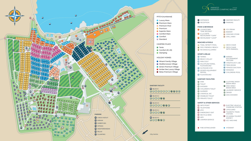 Welkom bij Aminess Planet Camping Maravea Resort, een uitzonderlijke glampingbestemming aan de prachtige Adriatische kust in Novigrad, Kroatië. Het park biedt een unieke combinatie van luxe glampingtenten en moderne voorzieningen voor families, stellen en groepen die op zoek zijn naar comfort en avontuur. Het resort beschikt over meerdere buitenzwembaden, waaronder kindvriendelijke splashzones, waterglijbanen en schaduwrijke ligbedden omgeven door weelderig groen. Glamping-gasten genieten van directe toegang tot zee, gratis wifi, dagelijkse sport- en entertainmentactiviteiten, en tal van eetgelegenheden, waaronder een levendig piazza en restaurants. Dankzij moderne faciliteiten zoals laadpalen voor elektrische auto's, bootverhuur op het terrein en huisdiervriendelijke services is dit de perfecte plek om te genieten van luxe in de buitenlucht met een mediterraans tintje. Geniet van ontspannen momenten onder een cabana bij het zwembad of maak 's avonds een wandeling langs de schilderachtige kustlijn.