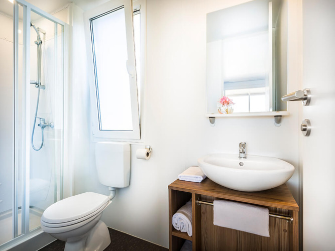 Mi sàtoros mobilhàzban szálltunk meg, ami tökéletes választás volt. A konyha teljesen felszerelt, a szobák kényelmesek, minden nagyon tiszta volt. Hangulatos a sátor belül, klíma is volt, grillezni is tudtunk. Sajnos a kemping területén lévő medencéket nem tudtuk használni, nekünk nagyon hideg volt a vize. A kemping területén minden van, bolt, suvenires, étterem, játszótér, sportpályák, kutyusoknak is külön játszó. Családoknak ideális, de baráti társasággal is. Szerettünk itt lenni.