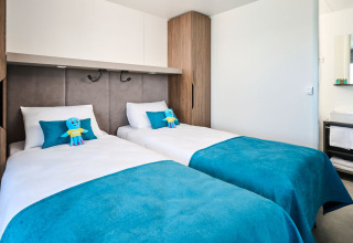 De woning biedt plaats aan maximaal 5 gasten (maximaal 4 volwassenen) en is daardoor ideaal voor families of kleine groepen. Er zijn twee stijlvolle slaapkamers: één met een tweepersoonsbed en de andere met twee eenpersoonsbedden, elk voorzien van fris beddengoed en vrolijke blauwe accenten. Extra slaapruimte is te vinden op de comfortabele slaapbank in de woonkamer.