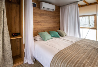 De Mini Lodge is een gezellige accommodatie van 13 vierkante meter, met een terras van 6 vierkante meter. Het is ontworpen voor maximaal twee gasten en beschikt over een comfortabel tweepersoonsbed (180x200 cm). De lodge is voorzien van airconditioning, gratis Wi-Fi en een mini-koelkast, evenals een ILLY espressomachine voor koffieliefhebbers. De badkamer is uitgerust met een douche, föhn en badartikelen. Er is een tv en een persoonlijke kluis voor een laptop. Beddengoed, handdoeken en eindschoonmaak zijn inbegrepen in de prijs, met schoon beddengoed om de drie dagen en schone handdoeken om de twee dagen. Huisdieren zijn welkom tegen een meerprijs.