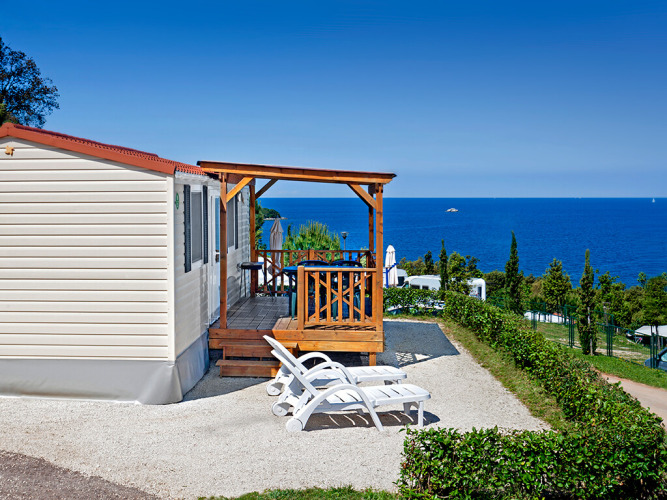 Camping Orsera in Vrsar, Kroatië, biedt een prachtige glampingervaring met uitzicht over de Adriatische Zee. Geniet van stijlvolle en moderne stacaravans op terrassen, waarvan veel met adembenemend zeezicht en een privé houten terras voor buiten dineren en ontspannen. Het interieur is licht en uitnodigend, voorzien van een keuken, eethoek en comfortabele zitruimte, waardoor je van alle gemakken bent voorzien. Slechts een paar stappen van het water kunnen glampinggasten relaxen op ligstoelen, buiten dineren met panoramisch uitzicht of simpelweg tot rust komen in de natuurlijke, rustige omgeving. Het park heeft uitstekende voorzieningen zoals gratis wifi, een restaurant, mini-markt en dagelijkse- en avondactiviteiten voor alle leeftijden. Beleef de mediterrane sfeer en maak onvergetelijke herinneringen terwijl je wakker wordt met het geluid van de zee, nabijgelegen eilanden verkent en geniet van de zon op je eigen terras.