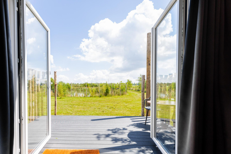Ontsnap aan de drukte en adem diep in op het zonnige vlonderterras, uitkijkend over de vijver. Deze stijlvolle tiny houses vlak bij ’t Nije Hemelriek bieden comfort én rust.