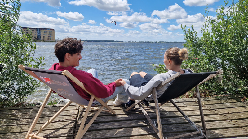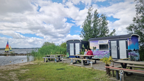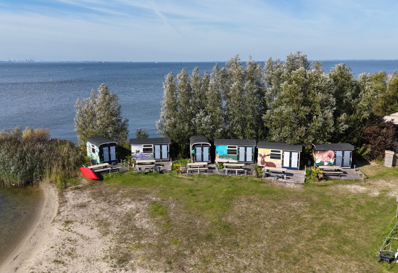 Vlak bij Amsterdam op het strand in Almere staan 6 leuke gekleurde Tiny Wagons met een schitterend uitzicht over het Markermeer. Een unieke plek! Ideaal voor watersporten zoals kitesurfen, catamaranzeilen, suppen en kanoen. Er zijn surfplanken, sups en kano's te huur. Ook kun je zeil- en catamaran lessen nemen. Blijf je liever droog dan kun je ervoor kiezen om lekker rustig aan de waterkant te zitten of op een van de omliggende terrassen, om te genieten van de mooiste zonsondergangen.