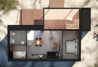 Op zoek naar een modern eilandverblijf met een knusse sfeer? Sea Lodges Ameland 4 is een stijlvol toevluchtsoord, verscholen in de duinen nabij het dorp Hollum. De lodges zijn licht, ruimtelijk en slim ontworpen, met grote ramen, vloerverwarming en een privéveranda met een comfortabele loungeset – ideaal voor je eerste kop koffie van de dag of een ontspannen drankje in de avond.
