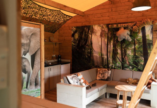 Papa’s en mama’s komen ook niets tekort, want de zespersoons tenten (of eigenlijk vakantiehuisjes) zijn helemaal ingericht voor een echte kampeervakantie. Ze hebben een tweepersoonsbed, stapelbed en slaapzolder voor oudere kinderen. Een keuken met ruime inventaris met gaskachel en een eigen toilet.