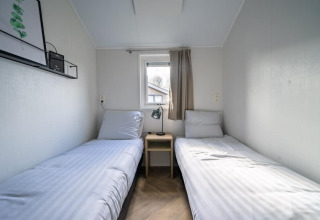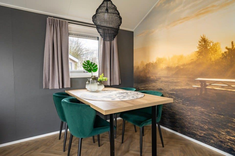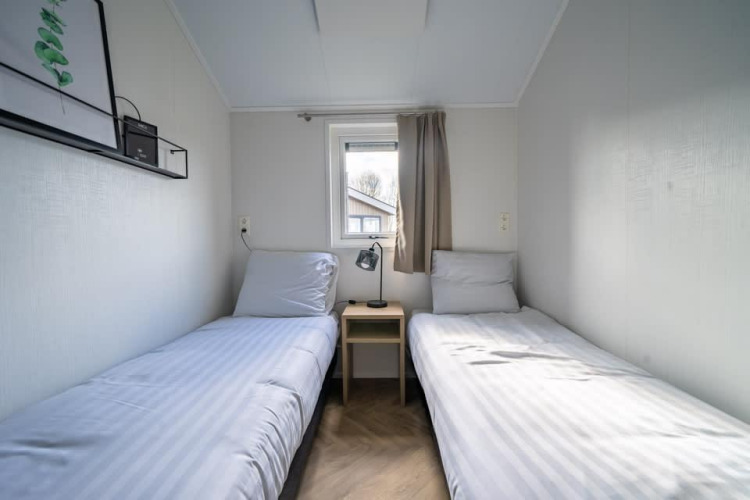 Velthorst 4 staat bekend om zijn grote ramen en frisse interieur. Het vrijstaande chalet bevindt zich op de begane grond en is geschikt voor maximaal 4 personen. In de woonkamer vind je een gezellige zithoek met televisie, een eethoek en een keuken met vaatwasser, combimagnetron en koffiezetapparaat. Het chalet heeft 2 slaapkamers, beide met 2 eenpersoonsbedden. De badkamer is voorzien van een toilet, wastafel en douchecabine. Via de schuifdeuren in de woonkamer kom je op het aangrenzende terras met tuinmeubilair. Je kunt 1 auto parkeren bij Velthorst 4 en je kunt gratis gebruikmaken van de Wi-Fi.