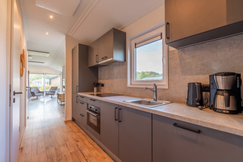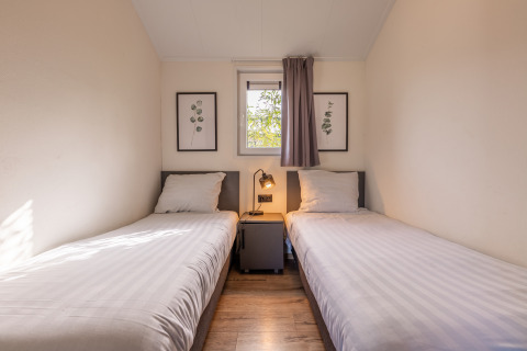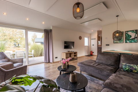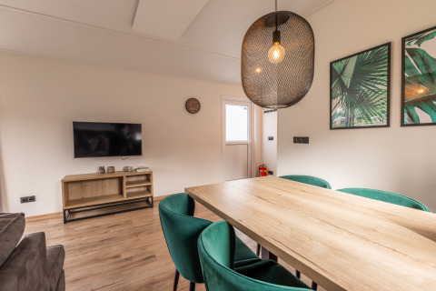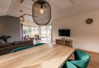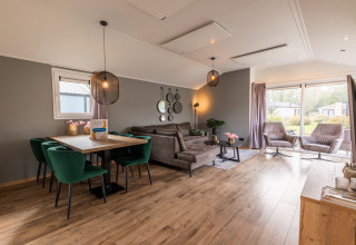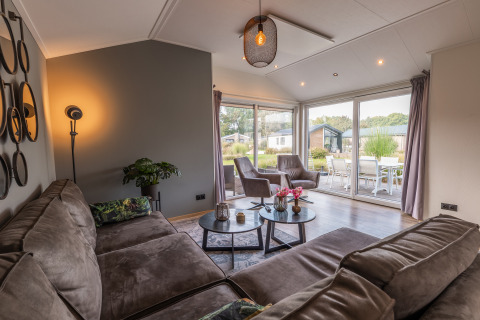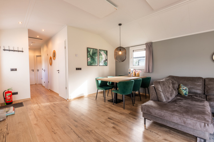 De moderne Velthorst 6 is een ruim chalet met veel lichtinval dankzij de ramen. Het vrijstaande chalet is gelijkvloers en geschikt voor 6 personen. De ruime woonkamer is ingericht met een gezellige zithoek en televisie, een eettafel met stoelen en een keuken inclusief vaatwasser, koffiezetapparaat en combimagnetron. In totaal heeft het chalet 3 slaapkamers, 1 met een stapelbed en 2 met twee eenpersoonsbedden. In de badkamer vind je een toilet, wastafel en douchecabine. Het chalet grenst aan een ruime tuin met gemeubileerd terras. Je kunt 1 auto parkeren bij Velthorst 6 en je hebt de beschikking over gratis wifi.