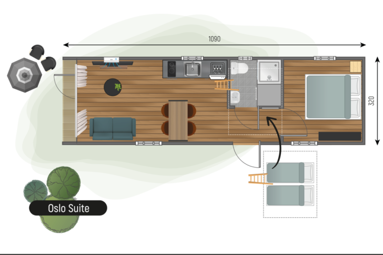De Oslo Suite biedt een knusse slaapplek voor twee personen op de vide, naast een aparte slaapkamer voor twee personen. Met een oppervlakte van 35m² is de accommodatie gezellig, maar biedt toch voldoende ruimte en luxe voorzieningen. Op het eigen terrein van 350m² kun je genieten van heerlijke avonden vol gezelligheid rondom de suite.