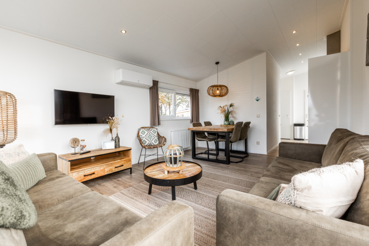 Dit vierpersoons vakantiehuis van 50m2 is van alle gemakken voorzien. Het chalet heeft twee slaapkamers (2*2 eenpersoonsbedden of 2 eenpersoonsbedden en 1 stapelbed), een badkamer met douche, toilet en wastafel, een ruime en gezellige living en een open keuken met combimagnetron, vaatwasser en genoeg ruimte om een heerlijke maaltijd op tafel te zetten. Met lekker weer is het heerlijk vertoeven op het terras bij het vakantiehuis, voorzien van een buitenhaard en tuinmeubilair.