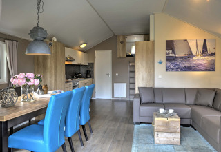 Word wakker in een sfeervolle lodge in Limburg, ingericht voor 6 personen en voorzien van alle comfort. De overdekte veranda maakt het mogelijk om elk seizoen buiten te zitten, of het nu zonnig is of wat frisser. Binnen vind je een knusse zithoek met tv en een ruime eethoek om samen te genieten van lange avonden. De keuken is compleet uitgerust met vaatwasser, koelkast met vriesvak, koffiezetapparaat en alle kookbenodigdheden. Drie slaapkamers met boxspringbedden en inclusief bedlinnen zorgen voor een heerlijke nachtrust. De badkamer heeft een douche en wastafel, met het toilet in dezelfde ruimte. Na een korte wandeling verschijnt het uitzicht over water, jachthaven en strandbad. Een plek waar luxe, natuur en comfort moeiteloos samenkomen in het hart van Limburg.