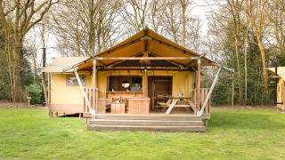 De safaritent is een luxe safaritent geschikt voor maximaal 4 personen, een ideale accommodatie voor een vakantie met het gezin of een groep! Met een oppervlakte van 25m2. Eet met z’n allen aan de grote tafel met stoelen, gooi de voorkant van de tent helemaal open en geniet extra van het uitzicht en de frisse lucht. Maak maaltijden klaar in de complete keuken en kom aan het einde van de dag tot rust op een van de luxe stoelen of in een van de 2 slaapkamers. In de ene slaapkamer vind je een groot tweepersoonsbed, en in de andere kamer staat een stapelbed. Met een lengte van 2 meter zijn de bedden geschikt voor zowel kinderen als volwassenen.