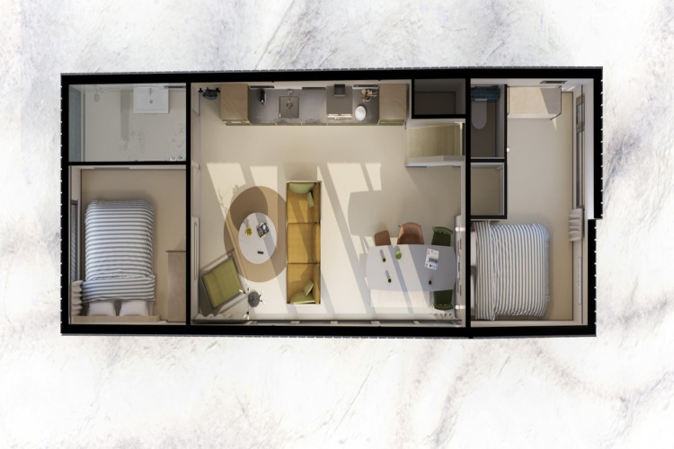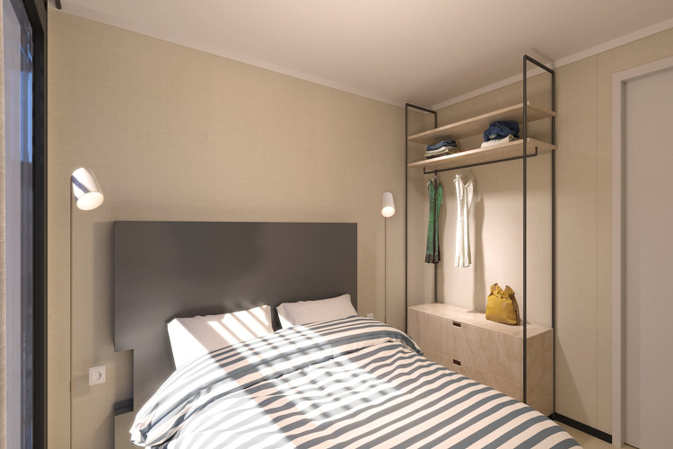 Elke lodge is stijlvol ingericht met strakke interieurs, grote ramen en een smart-tv. Je geniet van het comfort en de privacy van je eigen vakantiehuis, maar dan met alle voordelen van een gedeeld verblijf met de groep. Perfect voor een lang weekend aan zee, een surftrip of een ontspannen vriendenuitje.