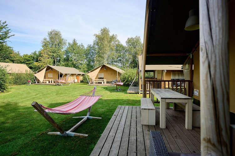 Zeer fijne camping, mooie ruime groene plekken. Verder was de tent ruim en luxe ingericht. Fijn om de airco als optie te hebben (vrijwel niet aangehad maar toch een fijn idee). Goede matrassen.