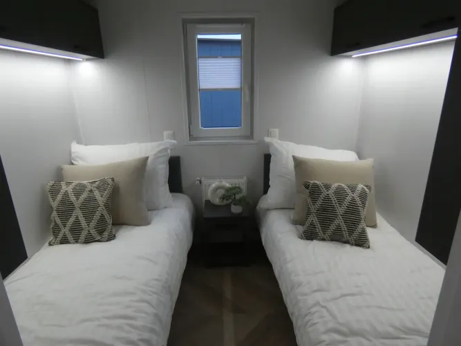 De Boslodge beschikt over twee ruime slaapkamers: een tweepersoons bed en een slaapkamer met twee losse bedden.