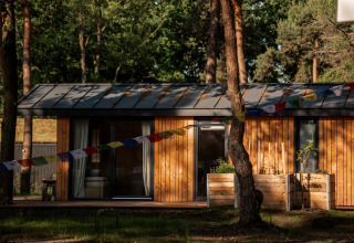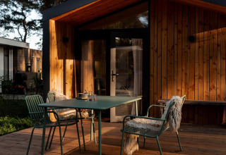 Mooie houten lodge met moderne inrichting op rustig bospark. Mooie natuurgebieden in de omgeving en Nijverdal op fietsafstand.