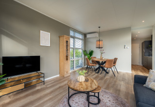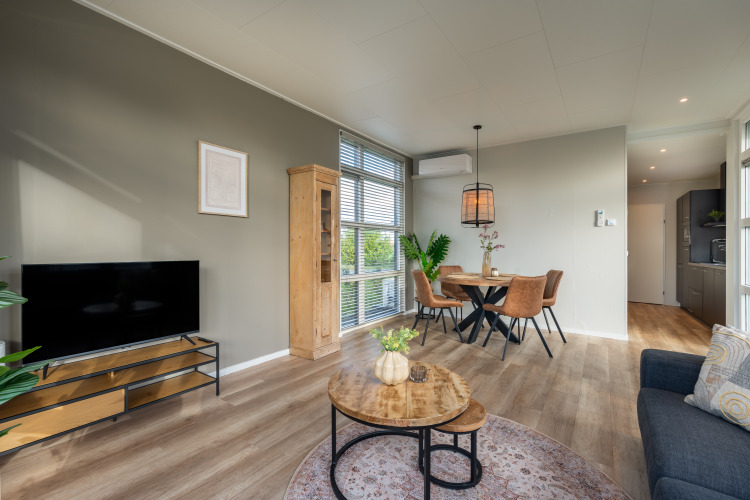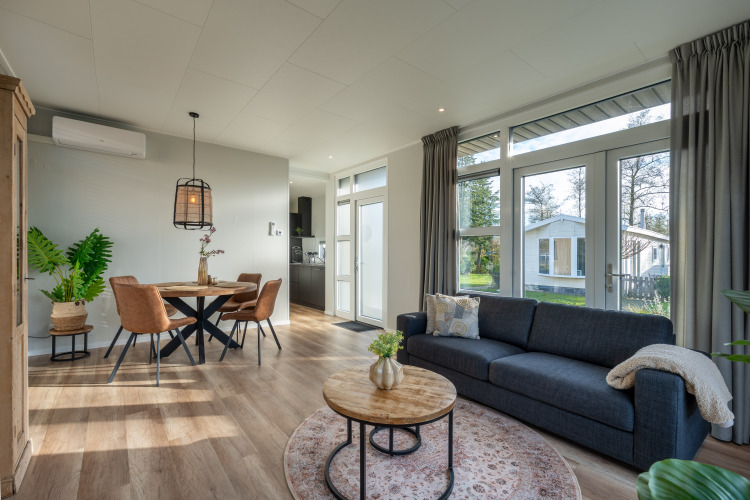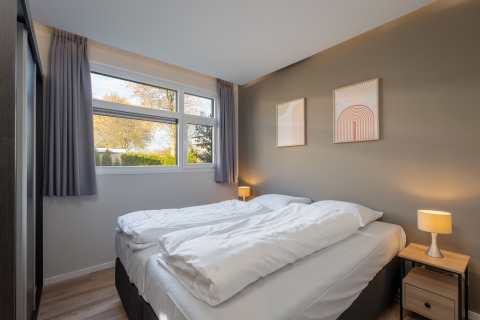 Ontspan in een comfortabele 4-persoons Boslodge, rustig gelegen aan de rand van het park. Geniet van de lichte woonkamer met zithoek, flatscreen tv en open keuken, compleet met 4-pits kookplaat, combimagnetron, vaatwasser, Nespresso en koelkast met vriesvak. Slapen gebeurt in twee slaapkamers met boxspringbedden of twee éénpersoonsbedden. De badkamer beschikt over douche, wastafel en toilet. Stap via de grote glazen schuifdeuren het zonnige terras op, compleet met loungeset en privé-hottub, perfect voor lange avonden buiten. Profiteer van airconditioning, wifi, rookvrije en huisdiervrije ruimtes, en een was-droogcombinatie.