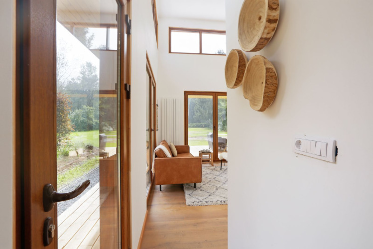 De lodge heeft een ruime tuin van circa 300 m2 met eigen parkeerplaats voor jouw auto en een gedeelde berging.