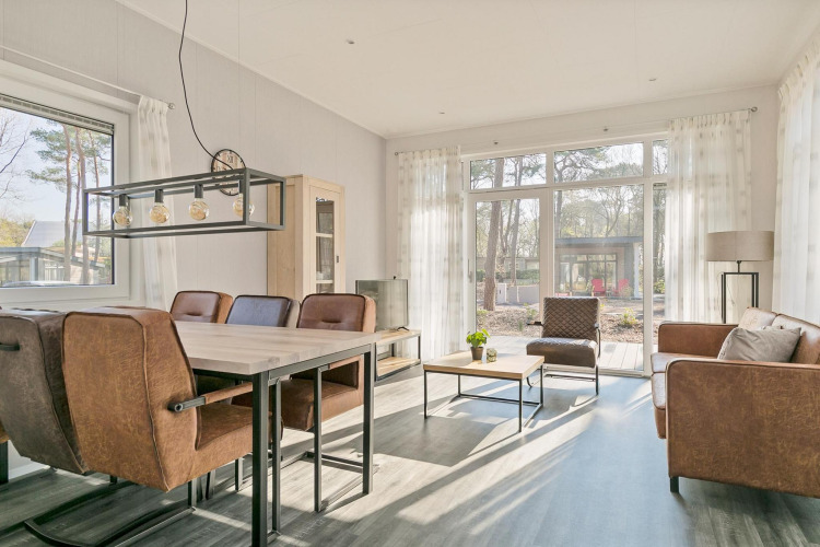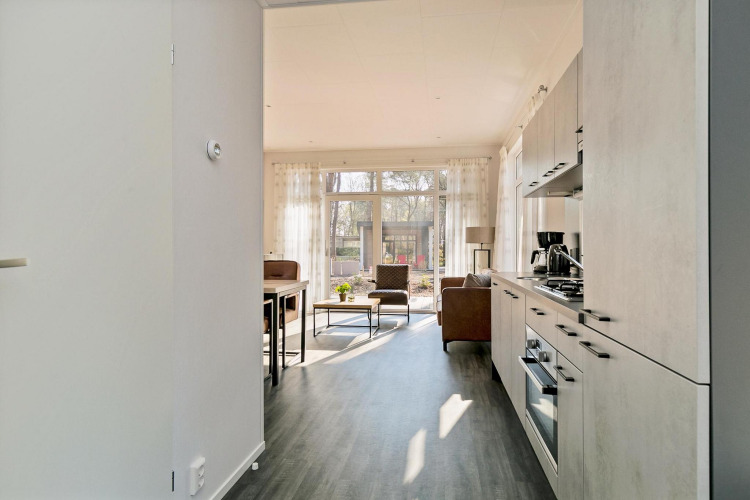 Deze 5-persoons chalet is prachtig ingericht met mooie meubels. De woonkamer heeft ruime zitplekken en in de keuken vind je een koelkast, gasstel, combi-magnetron, vaatwasser, koffiezetapparaat en een waterkoker.