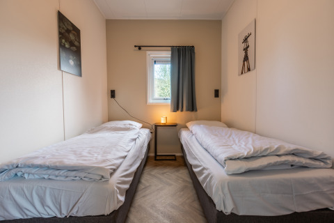 Vakantiechalet Comfort is een vrijstaand, gelijkvloers chalet dat geschikt is voor 4 personen. In de woonkamer vind je een zithoek met televisie. De open keuken is voorzien van een vaatwasser, magnetron en koffiezetapparaat. Er zijn 2 slaapkamers met elk 2 eenpersoonsbedden. Er is een badkamer met douche en toilet. Buiten is een terras met tuinmeubilair. Je kunt je auto parkeren op de centrale parkeerplaats en er is gratis WiFi beschikbaar.