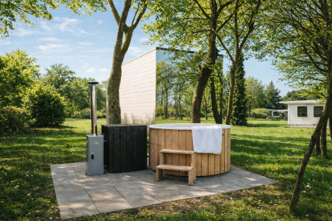 Ervaar spiegelglans en slow views in de River Mirrorlodge. Een spiegelgevel verdubbelt het uitzicht over de Regge en de Twentse weilanden, terwijl het huisje van buiten opgaat in de natuur. Binnen wacht een knus tweepersoonsbed met panoramisch zicht, een eigen badkamer met regendouche en een compacte keuken met Nespresso en kookgelegenheid. Airco en gratis wifi maken het verblijf compleet, ideaal voor een workcation aan de bar met uitzicht. Buiten lonkt de bubbeltub, perfect voor een ochtendkoffie of een avond onder de sterren. Een terras met meubilair en parkeren bij de lodge bieden extra comfort. Rustzoekers, koppels en uitzichtverslaafden vinden hier een plek om op adem te komen, te reflecteren en het tempo volledig zelf te bepalen.