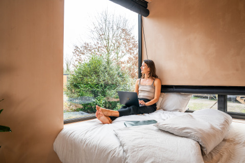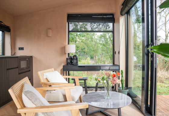 Midden in het groen staat Slowcabin: een moderne cabin die uitnodigt om te vertragen. Zodra je binnenstapt, voel je de harmonie tussen luxe en eenvoud. Het lichte interieur met natuurlijke materialen en de grote raampartijen zorgen voor een gevoel van ruimte en verbinding met de natuur.