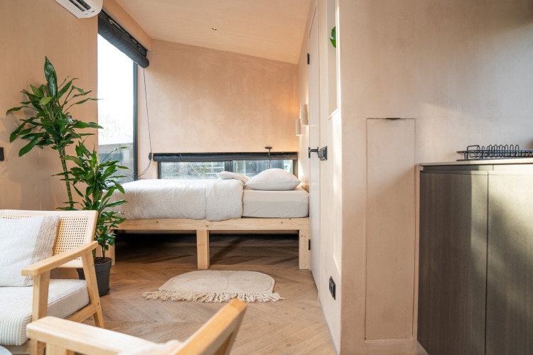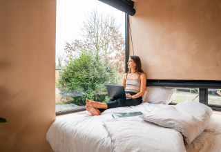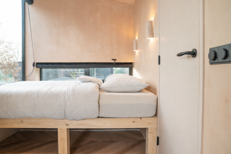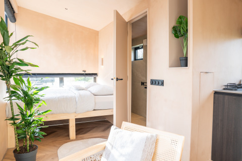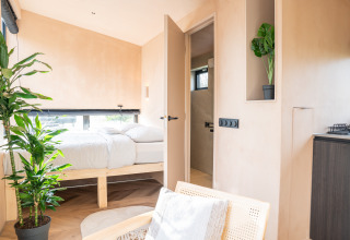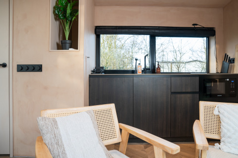 De cabin is compact maar compleet: een sfeervolle woonkamer met uitzicht op buiten, een volledig ingerichte keuken en een comfortabele badkamer maken je verblijf zorgeloos. Of je nu een weekendje wilt onthaasten, quality time zoekt met je partner of gewoon even wilt ontsnappen aan de hectiek, Slowcabin biedt je een intieme plek om helemaal op te laden.